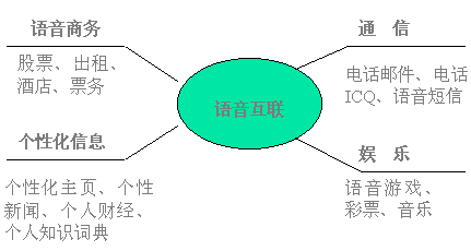 在中國(guó),電話(huà)有著最廣泛的用戶(hù)群;追求方便時(shí)尚,希望使用互聯(lián)網(wǎng)信息、郵件而不懂或不熟悉鍵盤(pán)操作的用戶(hù)占4/5;語(yǔ)音互聯(lián)網(wǎng)是電話(huà)網(wǎng)與互聯(lián)網(wǎng)的完美結(jié)合,通過(guò)語(yǔ)音互聯(lián),普通電話(huà)用戶(hù)用自然語(yǔ)言對(duì)話(huà)的方式即可獲取互聯(lián)網(wǎng)的主要服務(wù),滿(mǎn)足用戶(hù)任何時(shí)間、任何地點(diǎn)、任何設(shè)備獲取信息的需求。在美國(guó)、日本,語(yǔ)音互聯(lián)已成為簡(jiǎn)易終端接入互聯(lián)網(wǎng)的主要方式之一。