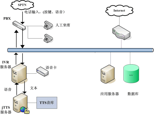 jTTS在12320中的應(yīng)用主要表現(xiàn)在查詢結(jié)果的語音返回和服務(wù)信息的發(fā)布上。只要將捷通TTS服務(wù)器集成到現(xiàn)有的IVR系統(tǒng)中,并且在IVR服務(wù)端設(shè)置好預(yù)讀出的文本即可。眾所周知,“12320”公益服務(wù)熱線需要提供海量關(guān)于我國公共衛(wèi)生相關(guān)法律法規(guī)、各種重大疾病的預(yù)防保健知識的宣傳和咨詢服務(wù),如果采用傳統(tǒng)人工座席或請專業(yè)播音人員錄音,費時費力,且投入較大。用語音合成技術(shù)(TTS)來解決,用戶提交查詢請求,IVR服務(wù)器收到請求后會向其他應(yīng)用服務(wù)器提交,當IVR得到查詢結(jié)果后,將文本形式的查詢結(jié)果交給jTTS服務(wù)器,jTTS服務(wù)器返回查詢結(jié)果的語音形式,最終語音在坐席上播放,用戶就可以聽到所要查詢的信息(如圖)。這樣市民可以24小時撥打熱線,查詢各方面的內(nèi)容,不受時間限制,既節(jié)約政府開支,為民辦實事,而且在最大程度上提高了辦事效率,樹立了良好的政府形象。