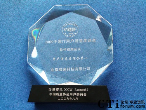 CTI論壇(ctiforum)09月03日消息: 在27日剛剛結束的“2009中國IT用戶滿意度年會”上,威速科技喜獲“2009軟件視頻會議IT用戶滿意度綜合第一”大獎。憑借在產(chǎn)品與服務方面多年的優(yōu)異表現(xiàn),成立10周年的威速科技連續(xù)9年獲此殊榮,這也充分彰顯了威速科技已成為視頻會議軟件市場上公認的滿意品牌。