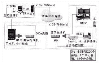 本會議電視系統(tǒng)的網(wǎng)絡接口全部采用了成本較低的V.35接口,并利用節(jié)省下的投資,為用戶購置了圖文攝像機,方便了用戶召開技術培訓和案例分析會議。