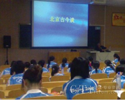 7月25日中央財(cái)經(jīng)大學(xué)的課堂里,近百位奧運(yùn)觀眾呼叫中心的志愿者聆聽了北京第二外國語大學(xué)西班牙語呂龍根教授的講座——“北京古今談”。呂教授幽默的語言、澎湃的激情,感染并征服了在座的每一位志愿者。教授從中國古代的六大古都(北京、西安、洛陽、開封、南京、杭州)談到古代北京的五朝建都(遼、金、元、明、清),從北京偉大的中軸線,談到北京建筑的風(fēng)水學(xué),從北京的胡同和四合院,談到北京的著名小吃,等等等等。可謂是古今暢想、無所不談,真正讓我們領(lǐng)略了何為學(xué)者風(fēng)范。