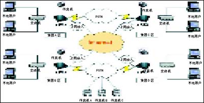 3.系統(tǒng)內(nèi)用戶發(fā)送傳真說明:集團A區(qū)的用戶如果發(fā)送本地傳真,則在集團A區(qū)的e-FAX網(wǎng)絡傳真機收到任務請求后,通過本地的PSTN網(wǎng)絡發(fā)送傳真,傳真發(fā)送成功后,系統(tǒng)自動給發(fā)送人一份傳真通報,發(fā)送完成;集團A區(qū)的用戶如果發(fā)送外地傳真,例如發(fā)送到集團D區(qū),集團A區(qū)的e-FAX網(wǎng)絡傳真機會自動根據(jù)收到的任務請求信息進行判斷,根據(jù)判斷的信息,將發(fā)送傳真請求和相應的傳真文件通過Internet路由到集團D區(qū)的e-FAX網(wǎng)絡傳真機,集團D區(qū)的網(wǎng)絡傳真機收到訊息后,會自動通過本地的PSTN發(fā)送傳真任務,發(fā)送結果會自動通報到集團A區(qū)的發(fā)送人,發(fā)送完成。同理,在集團的其他區(qū)域內(nèi)的發(fā)送傳真請求都會自動路由,判斷發(fā)送方式,從而完成發(fā)送任務。