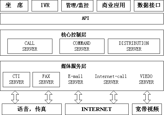 億陽(yáng)信通ICSYS智能呼叫中心系統(tǒng)采用媒體抽象的設(shè)計(jì)思想,通過(guò)媒體服務(wù)層屏蔽不同媒體的差異,允許以一種統(tǒng)一的消息處理機(jī)制來(lái)定義呼叫,把復(fù)雜的通道處理過(guò)程對(duì)客戶(hù)及服務(wù)代表完全屏蔽,實(shí)現(xiàn)媒體無(wú)關(guān)性。這種結(jié)構(gòu)使系統(tǒng)具有良好的擴(kuò)展能力,可根據(jù)具體的應(yīng)用場(chǎng)景增加或減少媒體;當(dāng)新的媒體出現(xiàn)時(shí),只需開(kāi)發(fā)對(duì)應(yīng)的媒體服務(wù)器,系統(tǒng)核心層不需作任何修改即可支持新的媒體。