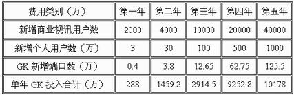 根據(jù)上表,相應(yīng)的GK建設(shè)投入費用估算如下: