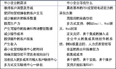 當中小企業(yè)從“非正式”轉(zhuǎn)向“正式”客戶中心操作時,他們需要與大型企業(yè)相同的客戶中心能力。對于這些企業(yè),合適的解決方案必須要解決一個重要的業(yè)務(wù)問題,例如以易于客戶聯(lián)絡(luò)的各種方式交流,使其成為真正的客戶中心。也許更重要的是,實現(xiàn)成本必須處于控制之下且管理良好。中小企業(yè)期望的是功能完善的客戶聯(lián)絡(luò)中心,但是價格必須能夠承擔(dān)得起,低花費,低培訓(xùn)成本,短期內(nèi)即可實現(xiàn)。