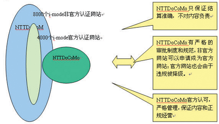 要解決上述問題需要一個系統(tǒng)化的進程,我們可以借鑒NTT DoCoMo的i-mode的管理模式,如圖5所示,這種管理模式的核心思路是將SP分成官方和非官方分別管理,并建立升降級制度,鼓勵SP升級。這樣做的好處是:1.明確運營商與SP的關(guān)系;2. 明確用戶投訴的對象;3. 降低SP進入門檻,鼓勵SP開發(fā)業(yè)務(wù)。