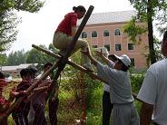 2、相信伙伴、勤于溝通。這次培訓(xùn)的所有項(xiàng)目,都是集體項(xiàng)目。這就要求我們必須相信伙伴,互相協(xié)作。信任來自溝通,信任來自了解。在一天的培訓(xùn)當(dāng)中,我們有言語上的溝通,有行動(dòng)上的幫助,有精神上的激勵(lì)。我們體會(huì)到幫助人和被人幫助是同樣的快樂。我信任我的伙伴們,也相信伙伴也同樣信任我。