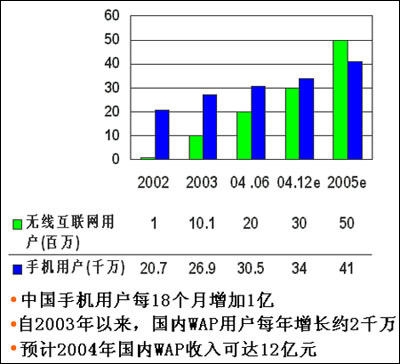 有數(shù)據(jù)顯示,國(guó)內(nèi)WAP用戶自2003年來以每年2000萬(wàn)的速度遞增,預(yù)計(jì)2005年末將有望達(dá)到5000萬(wàn),接近國(guó)內(nèi)Internet用戶總數(shù)的一半。WAP雖然是一個(gè)充滿了機(jī)會(huì)的市場(chǎng),但國(guó)內(nèi)現(xiàn)有的WAP站點(diǎn)資源很難滿足WAP用戶的需求也是事實(shí)。劉斌認(rèn)為,2005年將是對(duì)WAP非常關(guān)鍵的一年,在這一年里,WAP搜索將有望成為WAP平臺(tái)上的“殺手級(jí)應(yīng)用”,并最終催熟國(guó)內(nèi)各種相關(guān)的WAP應(yīng)用。當(dāng)然,這有一個(gè)前提,那就是中文WAP網(wǎng)絡(luò)資源必須在今年得到極大豐富。
