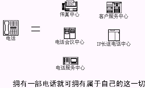 該方法的實施,可以讓每一個電話和強大的CTI系統(tǒng)聯(lián)系,一部電話將變成語音系統(tǒng)、傳真系統(tǒng)、電話會議系統(tǒng)、……。擁有這一切用戶只需要支付呼叫轉移的費用?梢栽O想,以后開辦公司,只要申請電話,擁有ADSL上網(wǎng)的電腦,用戶在辦公室、在家,打開電腦,單擊進入自己的語音系統(tǒng)、會議系統(tǒng),宣傳公司,召開會議,發(fā)送傳真。公司擁有、使用自己的、電信級的CTI系統(tǒng);所有CTI應用系統(tǒng)的開發(fā),語音部分完全由電話接入服務商提供,……。