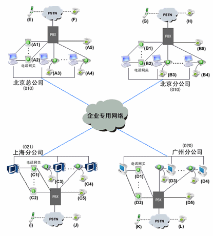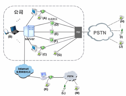 由玻瑞器客戶端和電話網關組成企業(yè)軟交換系統(tǒng)