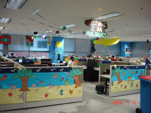 由于這種獨(dú)特的管理方式吸引了眾多的同行前來參觀,該中心特別安排了熱情的Sally負(fù)責(zé)導(dǎo)游。Sally帶我們參觀說的第一句話就是:“我真是喜愛我們的呼叫中心,這里的年輕人富有創(chuàng)意,充滿激情,他們非常喜歡在這里工作!庇谑俏覀儏⒂^了“蜘蛛俠”,“蒙娜麗莎”,“大英帝國”,“典雅餐廳”,“熱帶公園”,“幾何世界”,“海底世界”,“白色圣誕節(jié)”等不同的Pod,實(shí)在是好像到了聯(lián)合國。