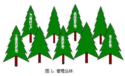 用“叢林”一詞來形容目前管理方法的林立,并沒有夸張的成份。在這片叢林中,許許多多根深葉茂的“參天大樹”不斷產生。許多專家學者把注意力集中于管理的某一方面,如質量管理、流程再造、項目管理、供應鏈管理等都體現了不同的管理視角。不同管理方法在理論緣由上相互促進、相互影響,他們以各自不同的方式和視角描繪了管理的不同側面。