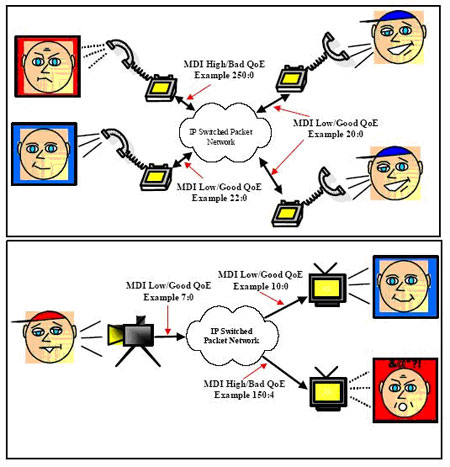 Loss Rate)表示的是每秒種丟失的媒體數(shù)據(jù)包。了解語音、視頻流的DF和MLR,業(yè)務(wù)提供商就能了解網(wǎng)絡(luò)(測量點(diǎn))和業(yè)務(wù)的性能指標(biāo)。在網(wǎng)絡(luò)中可以布置多個(gè)測量點(diǎn),了解媒體流如何進(jìn)入網(wǎng)絡(luò)、在網(wǎng)絡(luò)中的傳送是否正常、網(wǎng)絡(luò)的性能如何影響業(yè)務(wù)的質(zhì)量體驗(yàn)(QoS)。利用這些知識,業(yè)務(wù)提供商能夠在質(zhì)量體驗(yàn)(QoE)變差的時(shí)候容易地在定位故障。