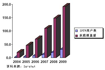 圖1世界范圍IPTV市場(chǎng)預(yù)測(cè)(單位:百萬(wàn))