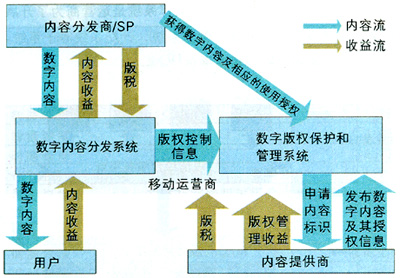 版權技術就是數(shù)字內容版權管理(DRM)技術,即給數(shù)字內容一定的控制和標識,避免其被非法使用、拷貝和盜版,為基于內容的各種增值業(yè)務發(fā)展提供安全保證。目前,數(shù)字版權管理技術正由第一代向第二代發(fā)展。DRM1.0技術主要用于內容的保護,DRM2.0主要加強通信保護和密鑰保護,這正是移動網(wǎng)需要的。