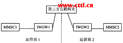 圖1 點對點多媒體消息業(yè)務(wù)網(wǎng)間互聯(lián)網(wǎng)絡(luò)結(jié)構(gòu)示意圖