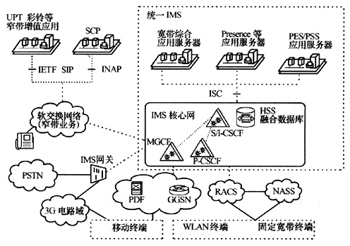 從國際標(biāo)準(zhǔn)化組織的研究來看,IMS的網(wǎng)絡(luò)架構(gòu)是覆蓋3G終端和固定寬帶終端的統(tǒng)一IMS。3GPPR7研究的是支持移動(dòng)和固定接入的統(tǒng)一IMS,ETSI