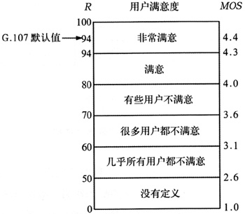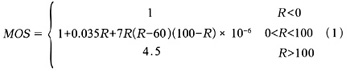 。5)MOS值,MOS模型是主觀評價方法,根據(jù)E模型MOS值是通過R值計算得到的。MOS值是1~5之間的數(shù),1是最差的,5是最好的[6]。R和MOS值的關系式如下所示: