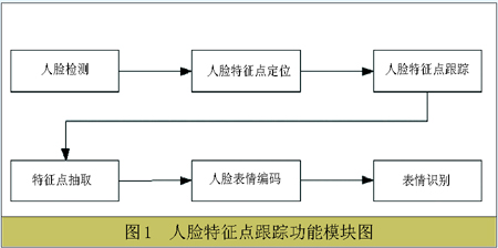 該模塊首先進(jìn)行人臉檢測,對眼角、嘴角等特征點進(jìn)行粗略定位,然后根據(jù)小波變換進(jìn)行精細(xì)定位,最終得到較為精細(xì)的人臉表情參數(shù)初始值。之后運用Lucas-Kanade算法進(jìn)行特征點的跟蹤,利用跟蹤得到的特征點位置首先根據(jù)Ekman的人臉表情編碼規(guī)則進(jìn)行編碼,然后根據(jù)所得到的編碼結(jié)果進(jìn)行表情識別。該系統(tǒng)不僅實現(xiàn)了全自動的特征點定位和跟蹤,而且根據(jù)人臉特征點的分布模型,可以對跟蹤時特征點的丟失現(xiàn)象進(jìn)行補(bǔ)償。
