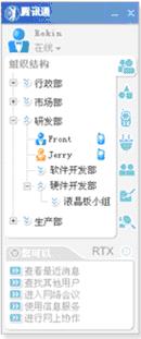 RTX的互聯(lián)功能:企業(yè)分支機構互聯(lián);RTX企業(yè)互聯(lián),RTX用戶可以與其他RTX企業(yè)用戶互通;與普通QQ用戶互連。