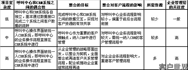 表一:呼叫中心和CRM整合項(xiàng)目的分類(lèi)