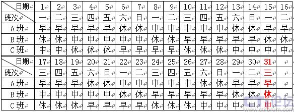 1)正常日班人員:主要的工作時間是8:00~16:00,該班組人員是固定在這一時間段內工作,不另作安排。