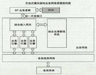 其功能實體包括:綜合接入網(wǎng)關,可屏蔽底層網(wǎng)絡細節(jié)、實現(xiàn)跨網(wǎng)絡的業(yè)務統(tǒng)一接入;業(yè)務引擎,可與底層網(wǎng)絡交互,實現(xiàn)具體的業(yè)務服務功能;綜合支撐管理系統(tǒng)將實現(xiàn)統(tǒng)一的用戶管理、終端管理、業(yè)務管理和統(tǒng)一的計費管理的支撐服務。應該說,SCE解決了在這樣一個開放式橫向架構業(yè)務網(wǎng)絡下,如何快速有效地提供豐富、高質量和個性化的跨網(wǎng)業(yè)務的問題。它的功能定位非常明確,那就是供SP業(yè)務開發(fā)人員開發(fā)基于綜合接入網(wǎng)關的電信增值業(yè)務。