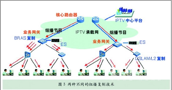 目前可以實現(xiàn)可控組播,具體的組播控制點和組播復制點方式可以有以下幾種選擇:   BRAS和DSLM都可以很好地解決組播問題。但由于BRAS在DSLAM的上層,因此如果采用BRAS組播方式,其特點是投資相對較少、控制較為方便,但是下層從BRAS到DSLM,用戶終端的帶寬占用較大。如果采用DSLAM組播方式,其特點是投資相對較多,控制較復雜,但是下層從BRAS到DSLM,用戶終端的帶寬占用較小。因此要根據(jù)各地具體情況來決定采用在何處進行組播復制。但無論如何,組播復制要確保不能影響用戶的收看質(zhì)量。