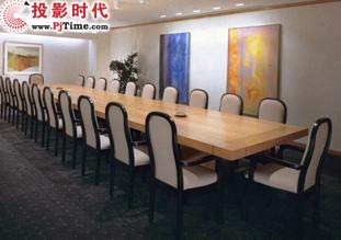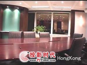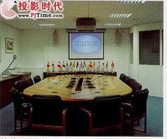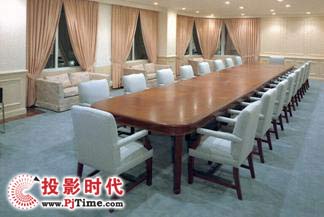 該會(huì)議室采用淺灰色色調(diào),與普通會(huì)議室沒有太大差別,采用頂部吊掛的投影機(jī)作為視頻的輸出設(shè)備,節(jié)省了會(huì)議室的空間,系統(tǒng)設(shè)備配置略復(fù)雜,具體如下: