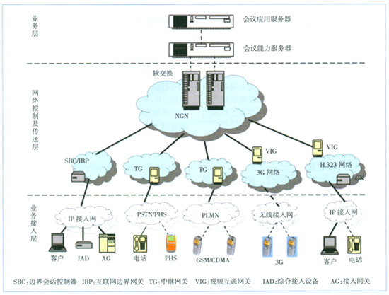 業(yè)務接入層面呈多元化,包括普通固定電話、小靈通、IP電話、視頻終端、PC軟終端、移動終端等。