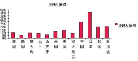 手機上網(wǎng)也受到一些用戶的歡迎,這得益于一些運營商為促進移動互聯(lián)網(wǎng)的推廣而越來越多地采取了手機上網(wǎng)打包套餐。此外,不同地區(qū)的用戶對使用手機上網(wǎng)的偏好不同,調(diào)查顯示,亞洲國家用戶使用手機上網(wǎng)的比例高于歐洲國家用戶。其中,日本的被調(diào)查者通過手機上網(wǎng)的比例明顯超過平均水平,這離不開NTTDoCoMo公司i-Mode的成功。有意思的是,中國緊隨日本排名第二,這有可能是因為移動通信在中國的普及率并不高,目前的用戶對技術(shù)的領(lǐng)悟能力大大超過了其它國家的平均水平,也有可能是因為一些被調(diào)查者用手機替代了固定電話,手機成為其上網(wǎng)的惟一途徑(見圖3)。展望未來,Ovum認為該領(lǐng)域充滿了期待。