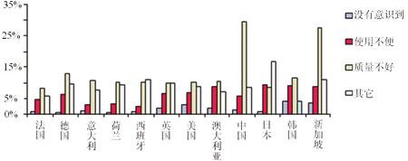 此外,質(zhì)量問題成為被調(diào)查者強調(diào)的重要原因之一,在中國和新加坡尤其如此。在新加坡,選擇質(zhì)量不好與選擇不感興趣的比例相當(dāng)。在中國,強調(diào)質(zhì)量問題的呼聲甚至比缺乏興趣的呼聲還要高:強調(diào)質(zhì)量問題的占29%,強調(diào)缺乏興趣的占21%。(見圖5)
