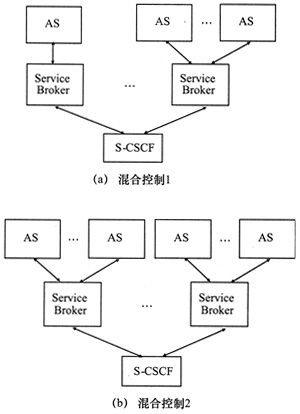 混合式控制結(jié)合了上述兩種方式,即有的ServiceBroker管理多個(gè)AS之間的業(yè)務(wù)交互,而有的ServiceBroker只和一個(gè)AS交互。在這種模式下,ServiceBroker不但要管理由它控制的AS之間的業(yè)務(wù)交互,還要管理屬于不同Service