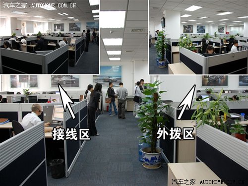 這是寶馬客服呼叫中心大廳,共分兩個(gè)區(qū)域,分別是接線區(qū)和外撥區(qū)。(如上圖所示)通過(guò)對(duì)寶馬呼叫中心的采訪我們得知,客服中心的員工在正式上崗之前有2個(gè)月的培訓(xùn)期,培訓(xùn)兩個(gè)月后才能正式上崗;所以員工一個(gè)月共接8000多個(gè)電話,所有電話均有錄音。