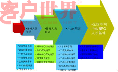 自然,首先得有人才的生產(chǎn)活著吸引能力,也就是意味著產(chǎn)業(yè)園區(qū)周邊有大量的相關(guān)院校,或者產(chǎn)業(yè)園區(qū)具有非常強(qiáng)的吸引外地人才的能力(例如北京),然后才談到人才的培養(yǎng),揚(yáng)州技師學(xué)院首設(shè)“呼叫專業(yè)”成為行業(yè)內(nèi)一個亮點(diǎn),事實(shí)上,北京早在2年前已經(jīng)在開展試點(diǎn)的工作了。關(guān)于人才解決方案以及人員的培訓(xùn),下面的這張圖表述更加淋漓盡致: