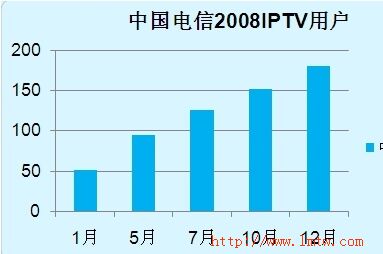 從08年初的51萬用戶到年末的180萬,中國電信IPTV即使面臨政策的限制,仍獲得了極大的發(fā)展。IPTV作為中國電信的戰(zhàn)略新興業(yè)務(wù),作為中國電信切入視頻服務(wù)領(lǐng)域、帶動(dòng)寬帶業(yè)務(wù)持續(xù)發(fā)展的重要種子業(yè)務(wù),其價(jià)值正被日益認(rèn)可。