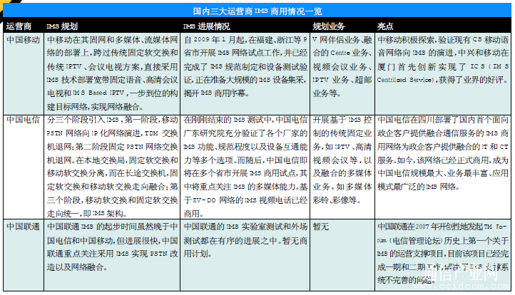 國內(nèi)三大運(yùn)營商已經(jīng)開始積極試點(diǎn)和部署IMS商用網(wǎng)絡(luò),樹立全業(yè)務(wù)競爭市場的優(yōu)勢。