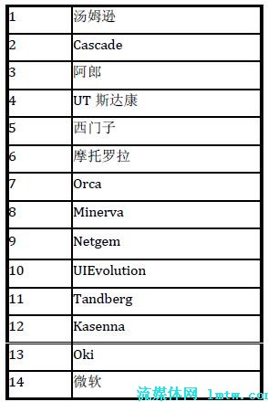 在中國市場上,UT 斯達康和中興公司暫時領先于其他公司。其中,UT 斯達康在海外也有不俗的表現(xiàn),如在印度和日本市場等;華為公司可以借助其整體解決方案的實力,有機會在下一代基于IMS 的IPTV 解決方案中脫穎而出。MRG 曾經(jīng)在2007 年3 月公布過一個市場調查,對IPTV 中間件及其市場影響力進行了一個排名,具體的結果見表1。