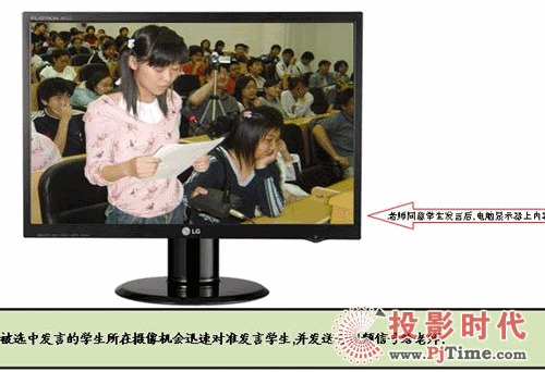 授課教室內(nèi)如果教師在講課,畫面自動(dòng)切換到教師,如果教師在使用電腦則自動(dòng)切換到電腦,如果教師讓某學(xué)生發(fā)言,則切換到學(xué)生畫面。