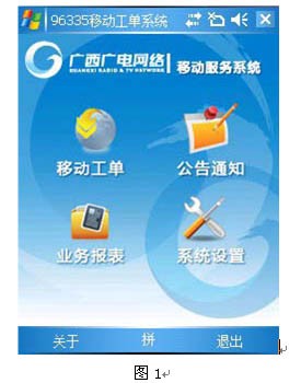 移動(dòng)工單系統(tǒng)是數(shù)字電視客戶呼叫中心平臺(tái)系統(tǒng)的延伸,它結(jié)合最新的網(wǎng)絡(luò)移動(dòng)技術(shù),實(shí)現(xiàn)數(shù)字電視服務(wù)工單分派業(yè)務(wù)的自動(dòng)流轉(zhuǎn)和實(shí)時(shí)流轉(zhuǎn),各地市維護(hù)站的服務(wù)工作人員通過智能手機(jī)終端,實(shí)時(shí)獲取工作任務(wù)、計(jì)劃安排,進(jìn)行業(yè)務(wù)處理,通過移動(dòng)網(wǎng)絡(luò)查詢客戶信息、查詢用戶產(chǎn)品訂購(gòu)資料,上報(bào)處理結(jié)果和用戶反饋信息,通過移動(dòng)網(wǎng)絡(luò)提交到管理部門,管理層能及時(shí)的掌握服務(wù)進(jìn)展情況,并能隨時(shí)做出決策和指揮,真正實(shí)現(xiàn)對(duì)用戶最快速、有效的服務(wù)需求響應(yīng),保證了服務(wù)質(zhì)量和用戶滿意度,提升了數(shù)字電視的服務(wù)水平與服務(wù)檔次。其界面如圖1所示。