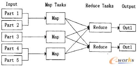 作為云計算的核心,簡單來講Map Reduce就是“任務的分解與結(jié)果的匯總”,圖3是其工作模式示意圖。