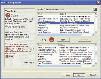 由開(kāi)放領(lǐng)域軟件(Open Field Software)新開(kāi)發(fā)的Ella 能分揀電子郵件,并將垃圾郵件撇在一邊。如果你渴望清理你的郵箱又舍不得放棄Outlook 的話,Ella就是你理想的選擇。大多數(shù)電郵軟件的分類都是以信件的特定部位來(lái)進(jìn)行分類的,如發(fā)件人的姓名或郵件主題。而Ella的分類更加詳盡周到,分類元素有100多種,從發(fā)信人到信件內(nèi)容再到信件來(lái)源,可一一進(jìn)行分類。如圖:
