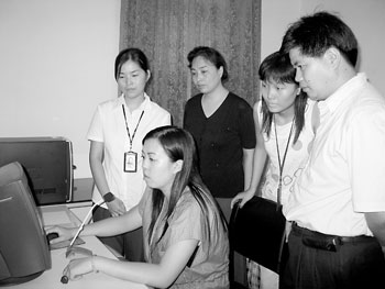 圖為南京電信增值業(yè)務(wù)部的同志到高淳縣供電局教用戶使用錄制軟件的情景。