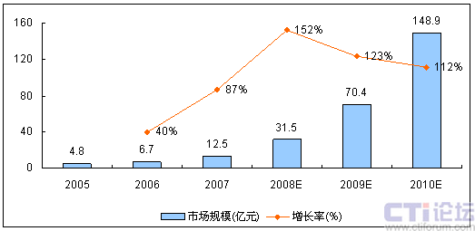 2008年移動(dòng)即時(shí)通信將達(dá)到增幅最高峰,市場(chǎng)規(guī)模實(shí)現(xiàn)31.5億元。2009年開始,預(yù)計(jì)增幅將有所放緩,到2010年,市場(chǎng)規(guī)模將接近150億元。