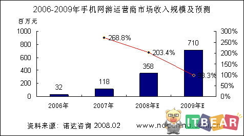 據(jù)第21次中國互聯(lián)網發(fā)展統(tǒng)計報告(CNNIC)資料顯示,我國網民總數(shù)達到2.1億,位居世界第二位。目前已有5040萬人在使用手機上網接入方式,約占網民總數(shù)的1/4(24%)。來自信息產業(yè)部的統(tǒng)計資料顯示,截至2007年12月31日我國移動手機用戶達到5.47億,這些都為手機網游提供了良好的發(fā)展環(huán)境。