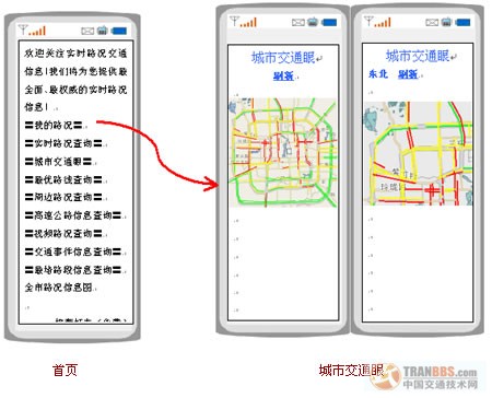 手機(jī)上通過(guò)短信查詢(xún)動(dòng)態(tài)交通信息,提供動(dòng)態(tài)路徑規(guī)劃,定制道路路況播報(bào)。