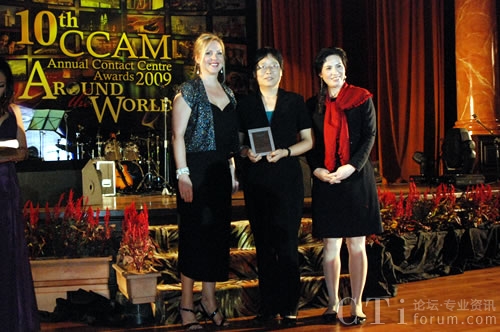 會(huì)議期間,中信銀行信用卡中心副總經(jīng)理金小云代表中國(guó)從亞太客服與呼叫中心聯(lián)盟(APCCAL)高級(jí)官員的手中接過(guò)了象征著2009亞太呼叫中心行業(yè)最高榮譽(yù)的2009亞太最佳呼叫中心的獎(jiǎng)牌。