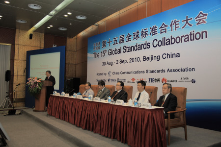8月30日至9月2日,信息通信領(lǐng)域“第15屆全球標(biāo)準(zhǔn)合作大會(huì)”(GSC-15)在北京隆重召開(kāi),會(huì)議由中國(guó)通信標(biāo)準(zhǔn)化協(xié)會(huì)(CCSA)主辦。來(lái)自國(guó)際電信聯(lián)盟(ITU)和北美、歐洲、中日韓的八個(gè)伙伴標(biāo)準(zhǔn)化組織(日本無(wú)線工業(yè)及商貿(mào)聯(lián)合會(huì)(ARIB)、中國(guó)通信標(biāo)準(zhǔn)化協(xié)會(huì)(CCSA)、歐洲電信標(biāo)準(zhǔn)化協(xié)會(huì)(ETSI)、加拿大ICT標(biāo)準(zhǔn)咨詢委員會(huì)(ISACC)、國(guó)際電信聯(lián)盟(ITU)、美國(guó)電信工業(yè)解決方案聯(lián)盟(ATIS)、美國(guó)電信行業(yè)協(xié)會(huì)(TIA)、韓國(guó)電信技術(shù)協(xié)會(huì)(TTA)和日本電信技術(shù)委員會(huì)(TTC)),以及ISO/IEC JTC1、ANSI、OMA、BBF、中國(guó)電子工業(yè)標(biāo)準(zhǔn)化技術(shù)協(xié)會(huì)、TD-SCDMA產(chǎn)業(yè)聯(lián)盟、感知中國(guó)物聯(lián)網(wǎng)聯(lián)盟等19家觀察員的共140多名代表參加了此次會(huì)議。
