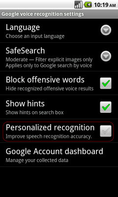Google為Android系統(tǒng)制作的語音搜索功能是一款非常好用的軟件,當用戶不方便進行文字輸入時可以進行語音輸入方便的進行移動搜索。在兩年前語音搜索問世時,Google確定的方向是兼容更多的聲音,無論性別、年齡、口音、音調(diào)、節(jié)奏等等因素影響下發(fā)出的聲音都能最大限度的在語音搜索中進行識別,這種方式雖然可以為大部分用戶提供服務(wù),但是在方言識別方便仍不能讓用戶滿意。