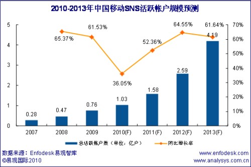 中國(guó)移動(dòng)SNS活躍帳戶2013年將達(dá)4.19億